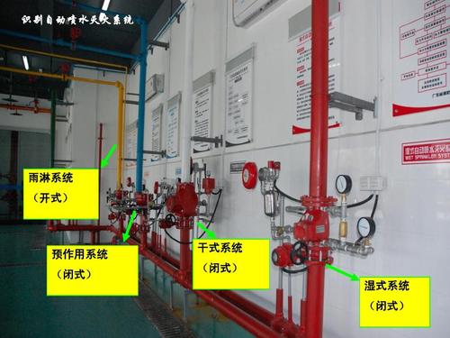 預作(zuò)用(yòng)自(zì)動噴水(shuǐ)滅火系統預作(zuò)用(yòng)自(zì)動噴水(shuǐ)滅火系統由消防管道(dào)系統、閉式消防噴頭、雨淋閥、火災探測器、報(bào)警控制裝置、控制組件、充氣設備和(hé)供水(shuǐ)設施等部件組成。規範相關圖示4-3,預作(zuò)用(yòng)自(zì)動噴水(shuǐ)滅火系統組成包括:1-總控制閥;2一預作(zuò)用(yòng)閥;3一檢修閘閥;4、14-壓力表;5一過濾器;6一截止閥;7一手動開(kāi)啓閥;8-電磁閥:9、11-壓力開(kāi)關;10-水(shuǐ)力警鈴;12-低(dī)氣壓報(bào)警壓力開(kāi)關;13一止回閥;15一空(kōng)壓機;16一報(bào)警控制箱,17-水(shuǐ)流指示器;18一火災探測器;19-閉式消防噴頭。